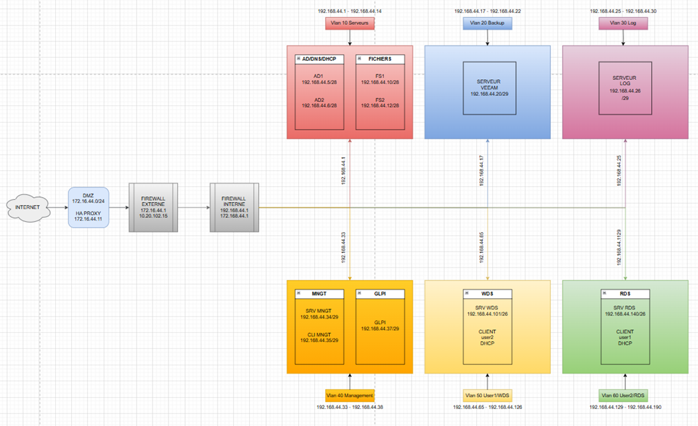 Lors de ma formation en BTS SIO, spécialité SISR, au CFA Robert Schuman, j’ai été chargé de développer une architecture réseau intégrale pour une entreprise fictive nommée Vanadzor. Cela s’est fait sur environ un an.